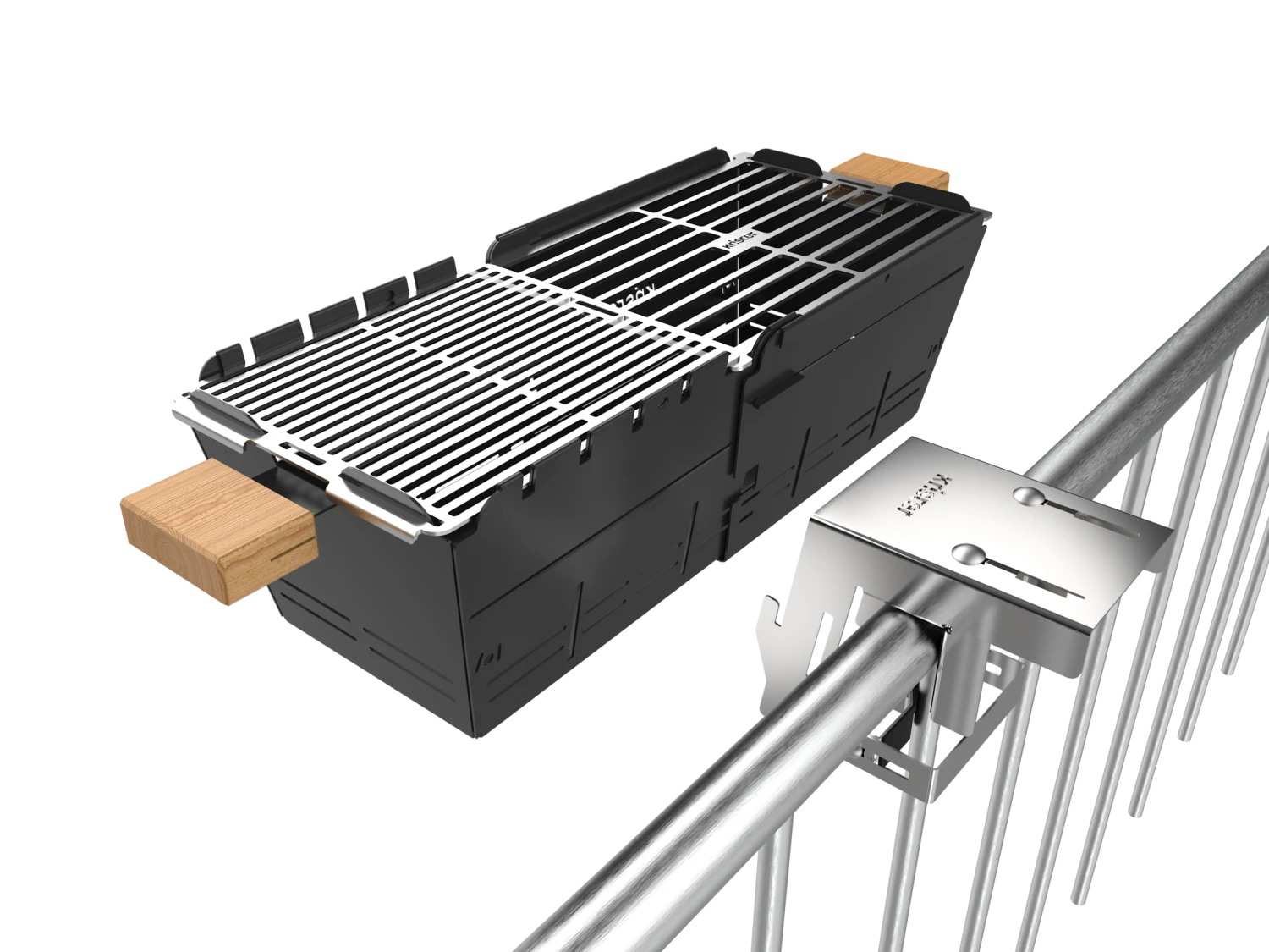 Knister Balkon- Relinghalterung, passend für alle runden, eckigen, gläserne, gemauerten Geländer. 100% Edelstahl. Maße: 10x8x10 cm