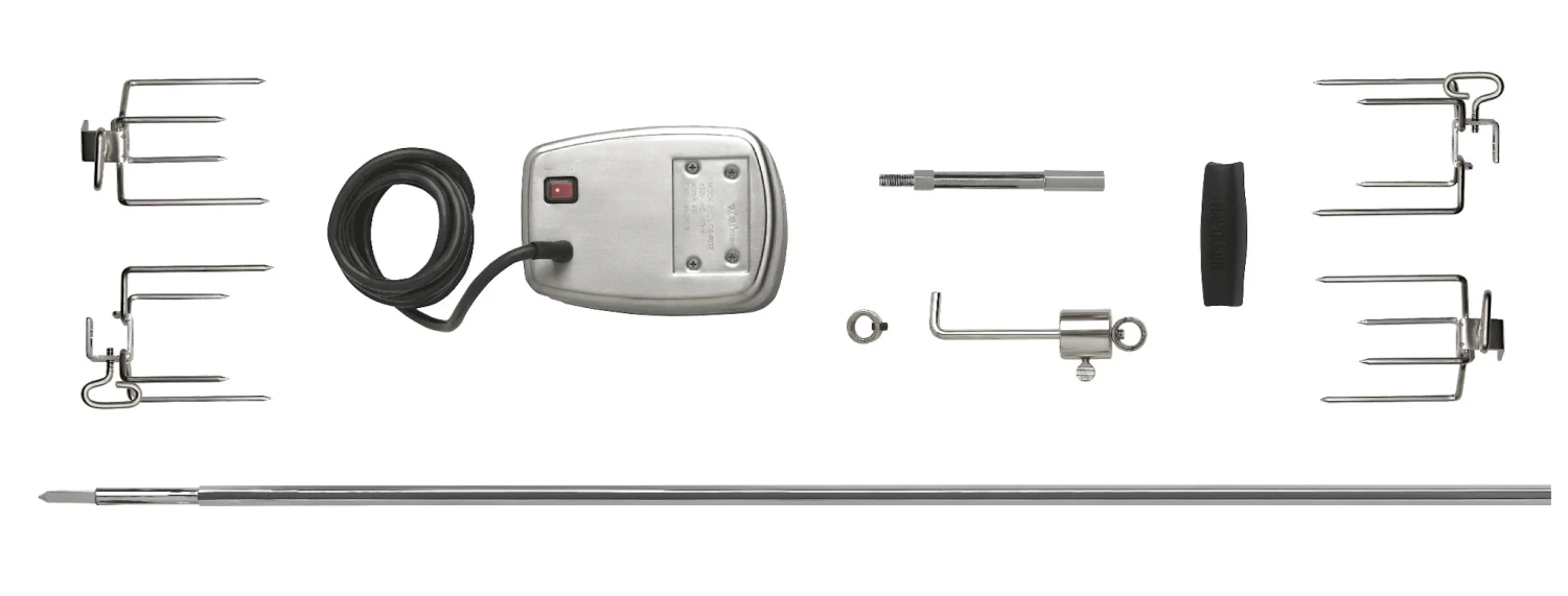 Das NAPOLEON Drehspieß-Set ist passend für die Serie LEX 605 & 730 / Charcoal Pro 605 . Der Drehspieß-Motor ist für Grillgut von bis zu 25 Kilo Gewicht ausgelegt und erweitert Ihren Grill um viele neue Einsatzmöglichkeiten.