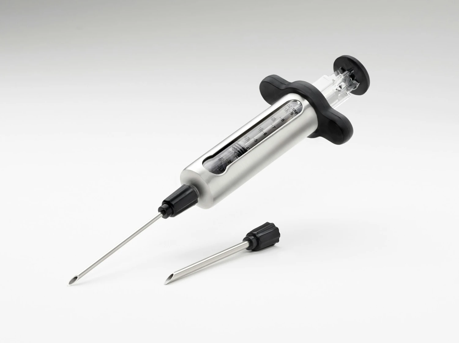 Der NAPOLEON Marinaden Injektor Edelstahl ist einfach zu reinigen und überzeugt durch eine lange Haltbarkeit, da das Gehäuse aus hochwertigem Premium-Edelstahl angefertigt ist. Damit Sie jederzeit alles im Blick haben besitzt der Injektor ein praktisches Sichtfenster mit zwei Skalen die uns anzeigen, wie viel Marinade noch in dem Injektor vorhanden ist. Im Set werden zwei Injektionsnadeln in verschiedenen Durchmessern mitgeliefert, Reinigungsbürsten für die Reinigung der beiden Injektionsnadeln und eine sehr praktische Aufbewahrungsbox, die für alle Teile des Sets einen passenden Aufbewahrungsort bietet. Dank des NAPOLEON Marinaden Injektor werden Ihre Gerichte geschmacksintensiver und safitger als je zuvor.