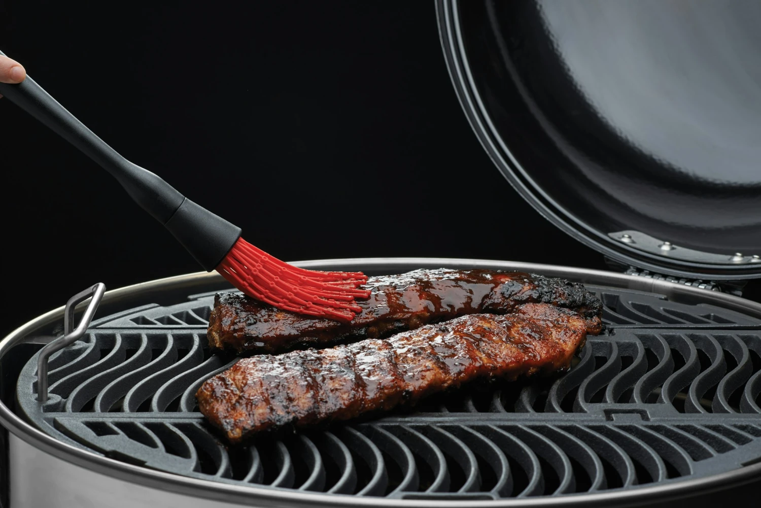 Der NAPOLEON Marinier Mop mit Silikonborsten liegt super in der Hand und ist ideal zum Marinieren von größerem Grillgut geeignet. Mit den kleinen Knötchen in den Silikon Borsten nimmt er besonders viel Marinade auf, sodass Sie auch größere Fleischstücke schnell und einfach marinieren können. Den Marinierpinsel können Sie nach dem Gebrauch auch direkt in die Spülmaschine stellen oder unter fließendem Wasser abwaschen. Am Stielende des NAPOLEON Marinier Mop mit Silikonborsten befindet sich ein praktischer Ring mit dem Sie den Pinsel einfach an einem Besteckhaken aufhängen können. So hängt er immer griffbereit an seinem Platz.