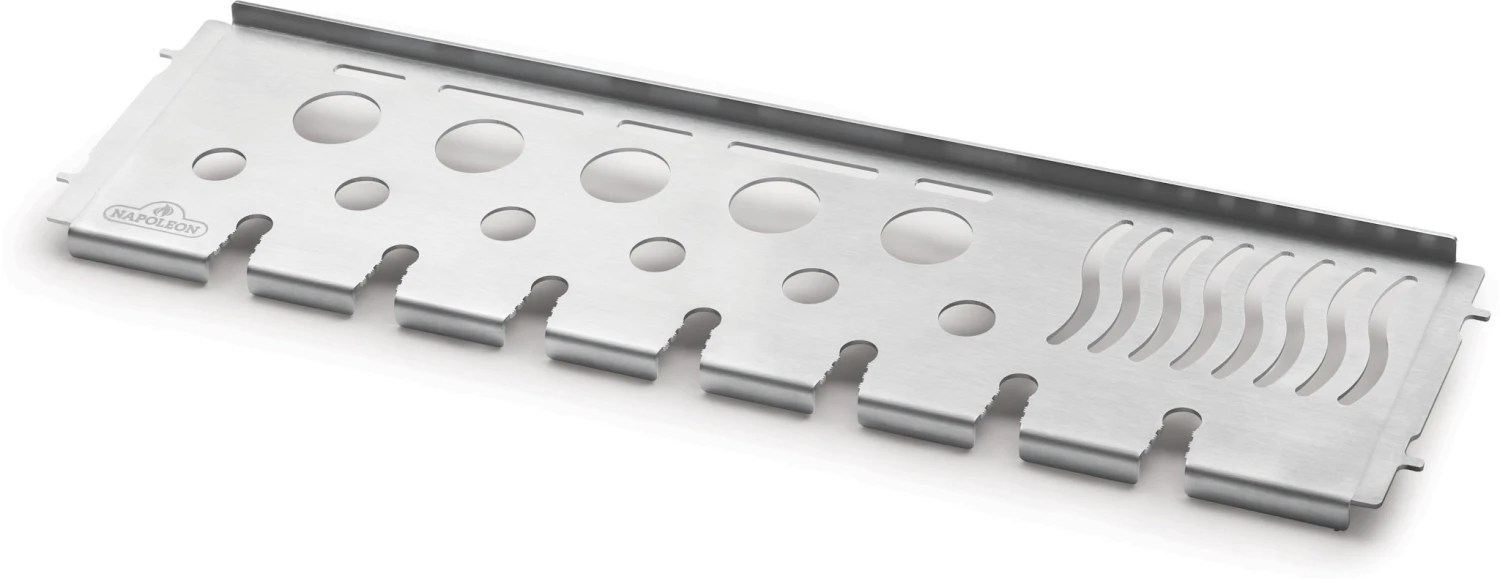 Massiver Napoleon Warmhalterost mit Aussparungen für diverses Gemüse, wie beispielsweise Tomaten, Paprika und Co. Der Grillrost-Einsatz lässt den Warmhalterost zu einer weiteren Grillebene werden. Für Napoleon Rogue 425 geeignet.