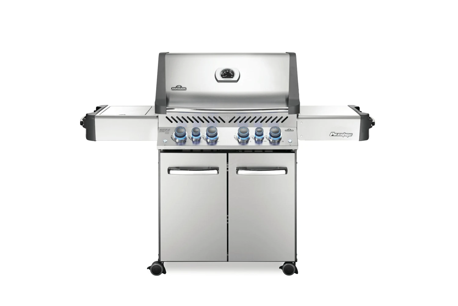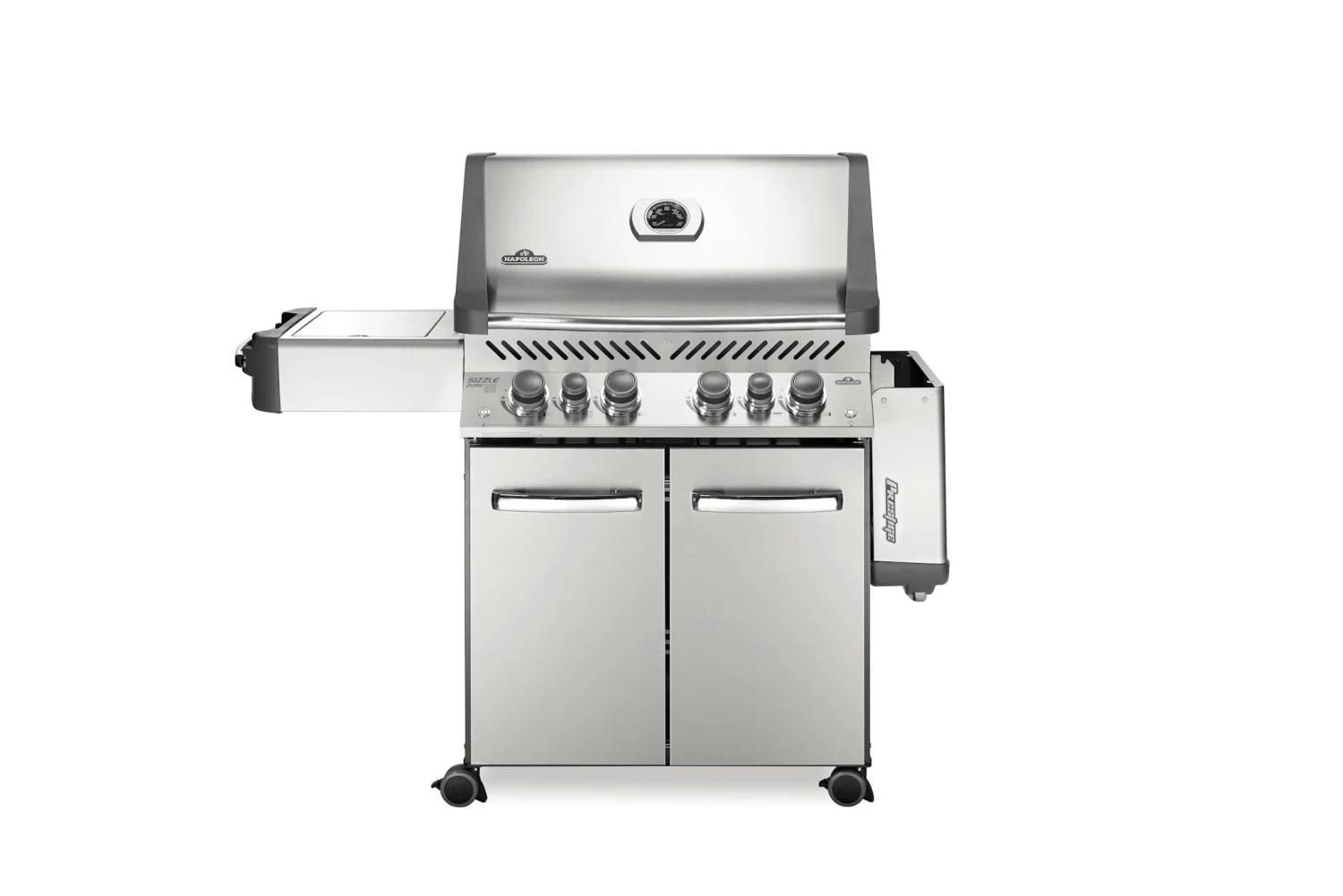 Der Napoleon Prestige 500 vereint unter seiner schicken und platzsparenden LIFT EASE Rollhaube alles, was sich ein Grillmeister vorstellen kann. Mit 4 Hauptbrennern, einem Infrarot-Heckbrenner für Gerichte vom Drehspieß und dem Infrarot SIZZLE ZONE Seitenbrenner für perfekte Steaks ermöglicht er vielfältigste Formen der Zubereitung. Auf der großzügigen Hauptgrillfläche plus Warmhalterost lassen sich Familie, Freunde, Nachbarn und der Fußballclub verköstigen. Grillfläche: 71 x 46 cm
