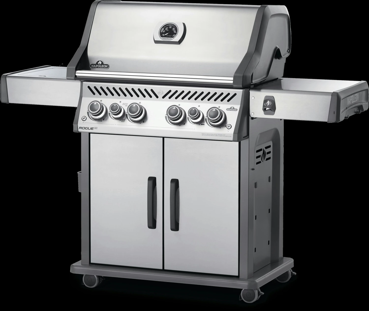 Der Propangasgrill Rogue® SE 525 aus Edelstahl mit Infrarot-Seitenbrenner und -Heckbrenner ist ein robuster Edelstahlgrill. Ausgestattet mit vier Hauptbrennern, einem Drehspieß-Heckbrenner und einem hohen Deckel, verfügt der Grill über alles, was Sie für die Zubereitung von Feinschmeckermenüs benötigen. Braten Sie wie ein Profikoch Steaks auf der integrierten Anbratstation an und nutzen Sie die zusätzliche Vorbereitungsfläche auf den Seitenablagen. Grillfläche: 74 x 45 cm Seitenbrenner: 24 x 37 cm