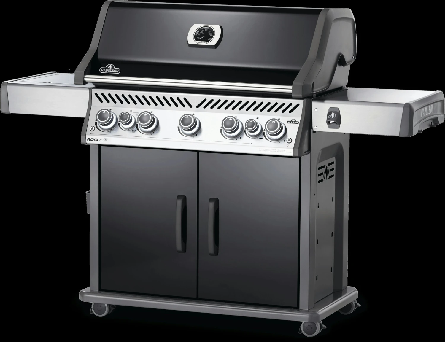 Der Propangrill Rogue® SE 625 aus Edelstahl mit Infrarot-Seitenbrenner und -Heckbrenner ist ein robuster Grill mit schwarzer porzellanbasierter Haube. Ausgestattet mit fünf Hauptbrennern, einem Drehspieß-Heckbrenner und einem hohen Deckel, verfügt der Grill über alles, was Sie für die Zubereitung von Feinschmeckermenüs benötigen. Braten Sie wie ein Profikoch Steaks auf der integrierten grillen Sie Steaks wie ein wahrer Grillmeister auf dem SIZZLE ZONE™ Infrarot-Seitenbrenner und nutzen Sie die zusätzliche Vorbereitungsfläche auf den Seitenablagen. Grillfläche: 90 x 45 cm Seitenbrenner: 24 x 37 cm