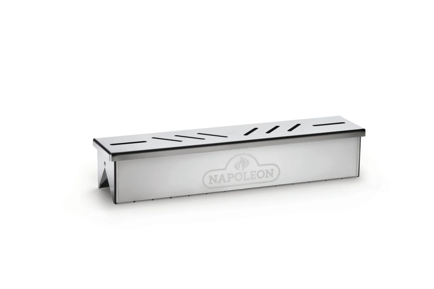 Große Smoker-Box aus Edelstahl zum ersetzten des Flammenbleches. Erleben Sie einen i ntensiven Rauchgeschmack auf Ihrem Gasgrill. Kompatibel mit Prestige Pro, Prestige und Rogue Grills.