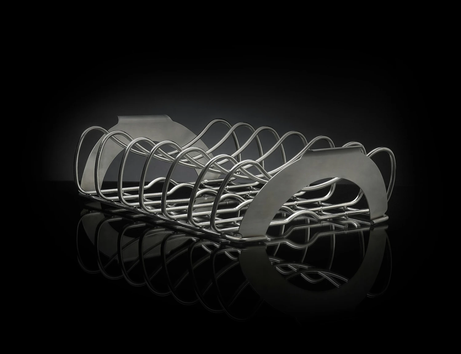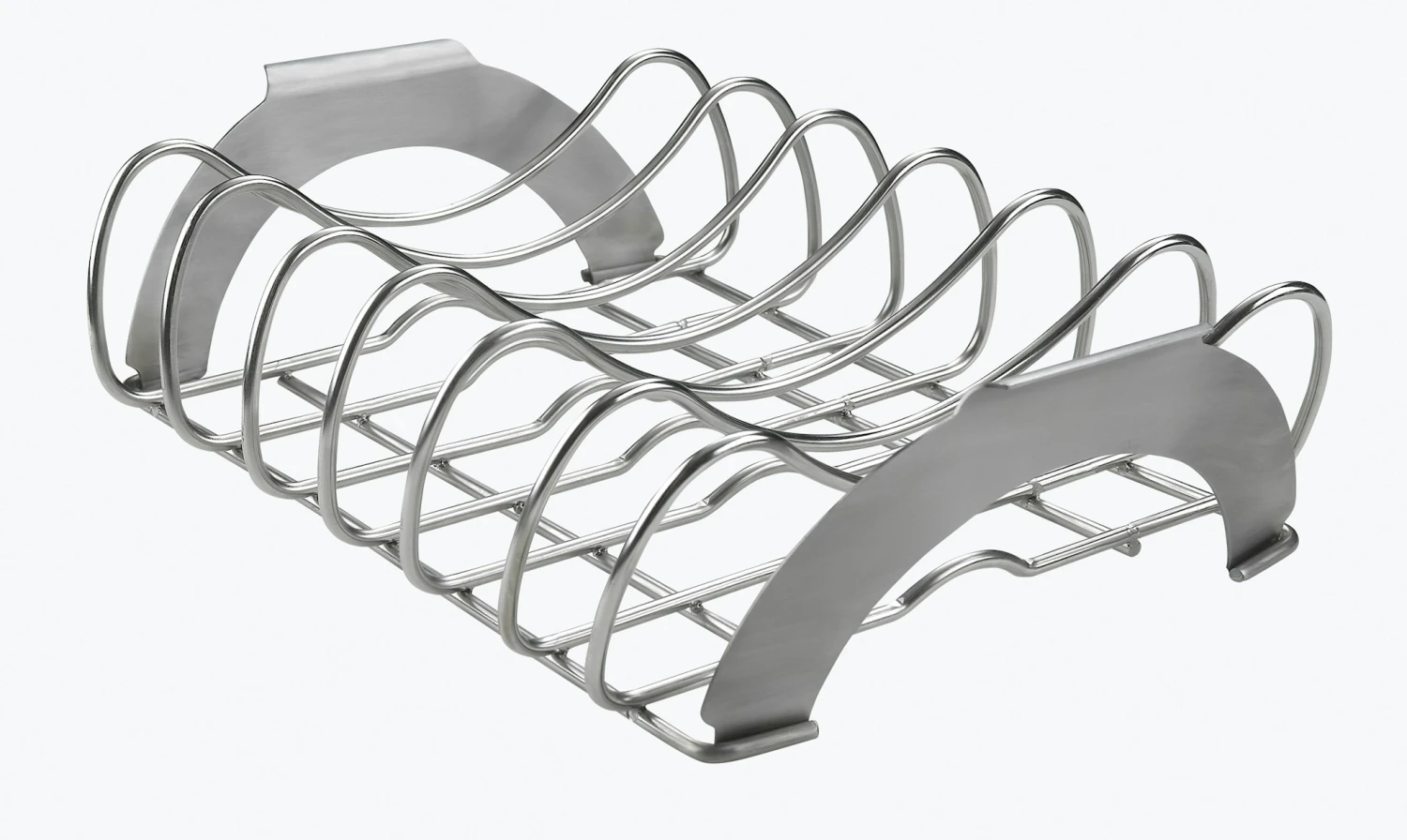 Grillen Sie saftige Spare-Ribs und riesige Bratenstücke mit dem NAPOLEON Spare-Rib-Halter mit seitlichen Griffen aus hochwertigem Edelstahl.