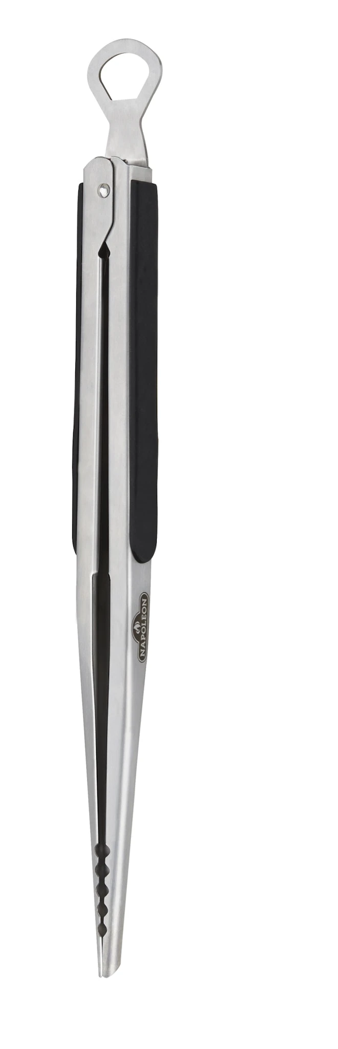 Wenn Gemüse oder Meeresfrüchte einen besonders zarten Griff verlangen, ist die NAPOLEON Spitzzange Edelstahl genau richtig. Mit der „Soft Touch Action“ greift sie besonders vorsichtig und präzise zu, ohne zartes und kleines Grillgut zu verletzen. Mit einer einfachen Bewegung ist die Zange entsperrt oder geschlossen, wenn Sie die Zange benötigen. Die gummierte, ergonomisch geformte Grifffläche bietet extra Halt und bleibt während des Grillens angenehm kühl.