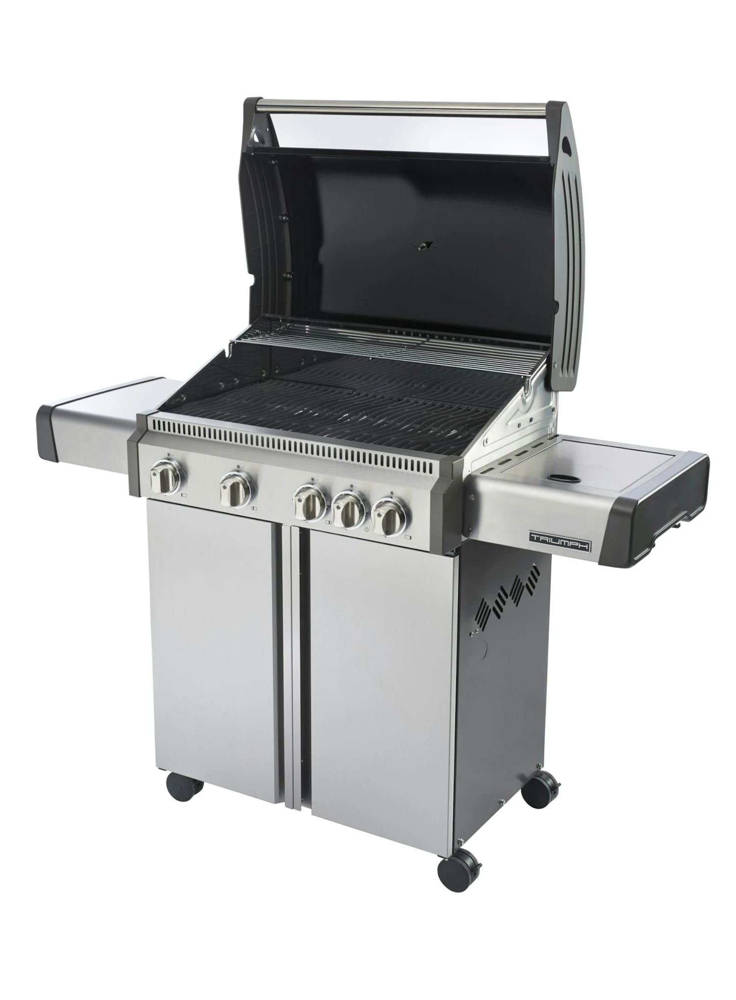 Der NAPOLEON Triumph 495 Gasgrill Edelstahl steht für hochwertige Qualität und viele Extras wie zum Beispiel einem Seitenbrenner mit Kochfeld, einem „WAVE“ Stabgrillrost aus porzellanbeschichtetem Gusseisen, einem integrierten Flaschenöffner und klapparen Seitenablagen. Grillfläche: 72 x 43 cm