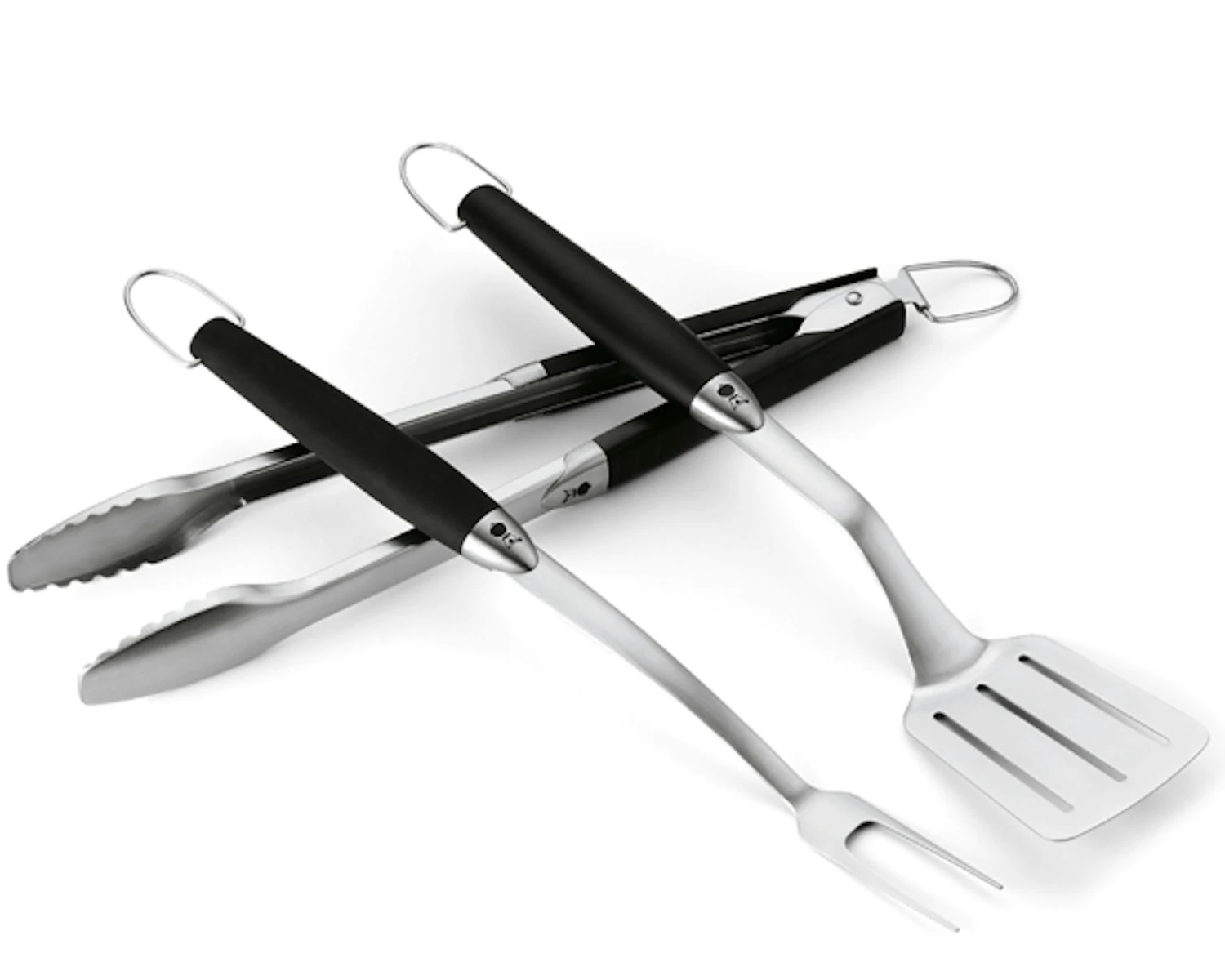 Das Weber 3-teiliges Grillbesteck Set wird aus hochwertigem Edelstahl gefertigt. Es besteht aus den drei meist genutzten Grillzubehör Artikel. Folgende Utensilien sind im Set enthalten: Grillzange, Wender und Gabel. Alle Artikel wurden mit schwarzen Kunststoffgriffen, für bequemes und angenehmes Handling, ausgestattet und erfüllen somit hohe Ansprüche und glänzen durch eine überzeugende Verarbeitung.