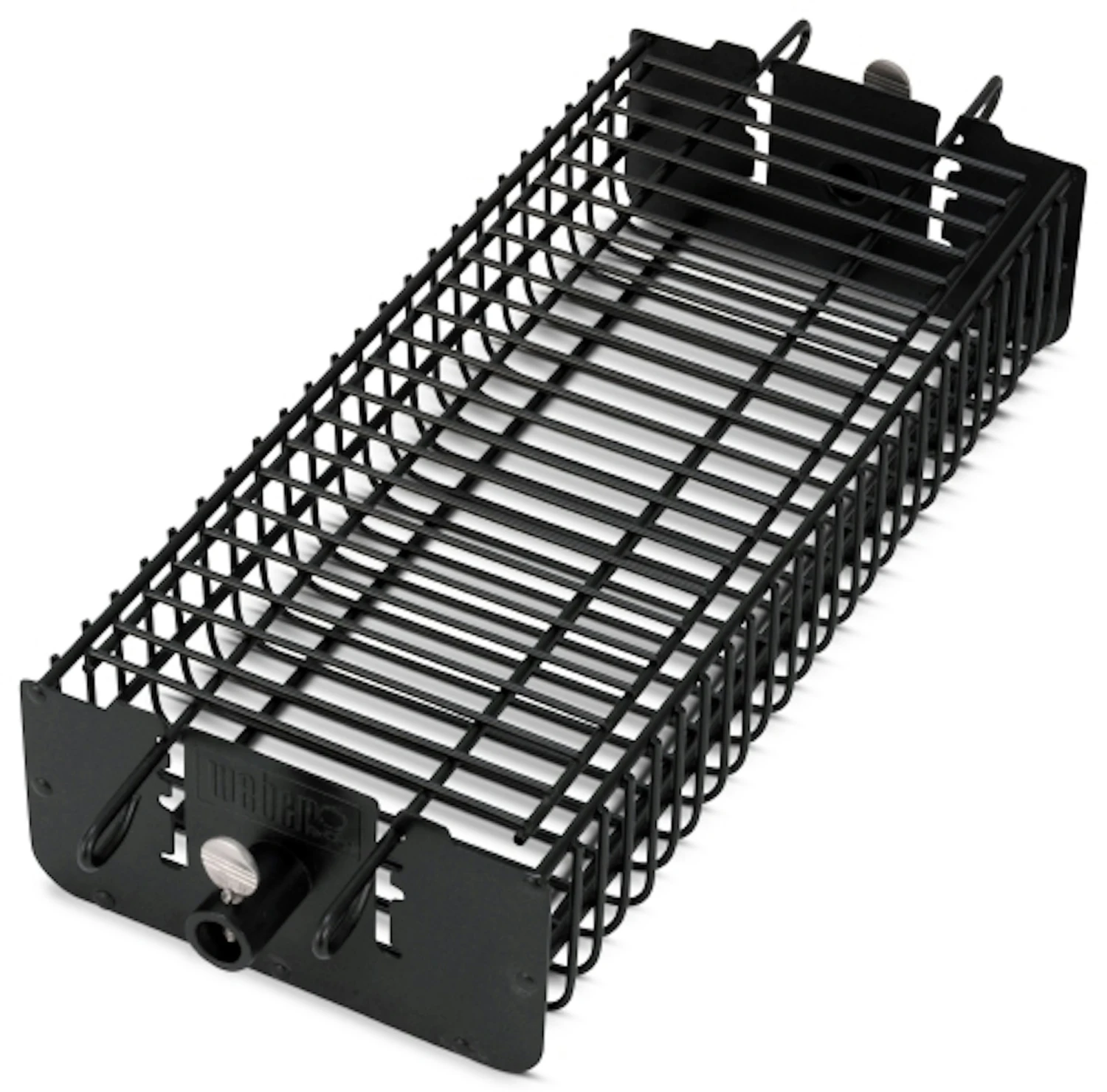 Der Weber Drehspieß-Korb (Grob) ist aus Antihaft-Karbonstahl gefertigt und ist deshalb sehr stabil und robust. Außerdem ist er ein ideales Zubehör für Ihren Weber Drehspieß und erleichtert Ihnen beispielsweise die Zubereitung von Kartoffelspalten oder größerem Gemüse. Eine ausgefallene Grillrunde ist mit dem Drehspieß-Korb von Weber garantiert. Der Drehspieß-Korb ist 44cm lang und 16cm hoch und eignet sich somit für alle Weber Gasgrills ab der Q 200-/2000-Serie und Holzkohlegrills ab Ø 57cm (Ausnahmen: Q 100-/1000-Serie und Holzkohlegrills unter Ø 57cm).