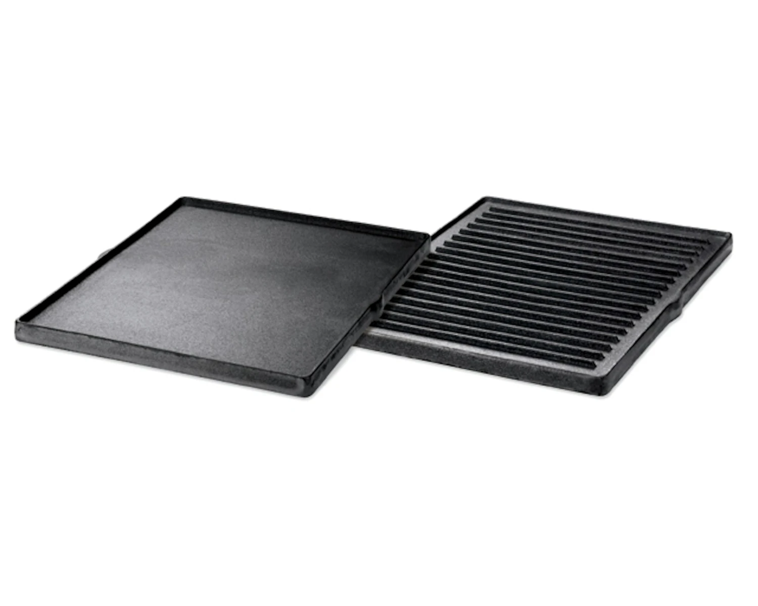 Die Weber Gusseiserne Wendeplatte ist mit einer flachen und einer geriffelten Seiten ausgestattet. Die Grillplatte ist optimal für Fischfilets, Garnelen, Gemüse und auch kleine Fleischstücke geeignet, da nichts mehr zwischen den Grillrosten durchfallen kann. Dank der genialen Weber Wendeplatte kann nichts mehr von Ihren leckeren Grillspezialitäten daran hängen bleiben, da sie über eine spezielle Oberfläche verfügt. Die Weber Wendeplatte eignet sich nur für den Weber Summit 400-600.