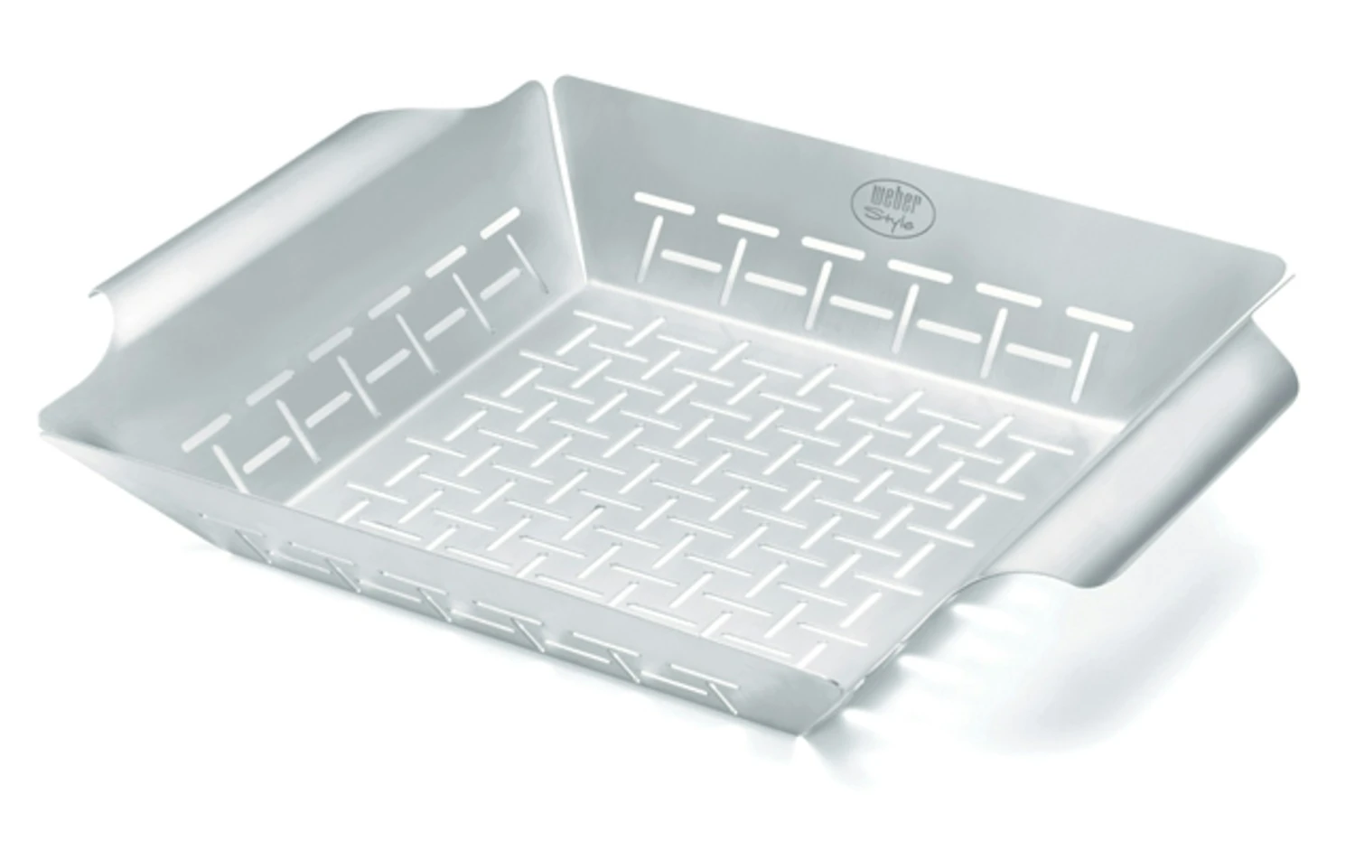 Der praktische Weber Style Gemüsekorb aus Edelstahl – schneiden oder würfeln Sie Gemüse in den Korb und stellen Sie ihn zu dem Hauptgang auf den Grill. Maße (BxHxT): 30 x 7 x 35 cm